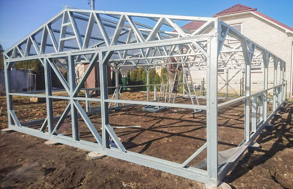 Lankstomi profiliai, surenkama pilna komplektacija. Paruošiama konstrukcijos surinkimo ir dangos pjaustymo schema.