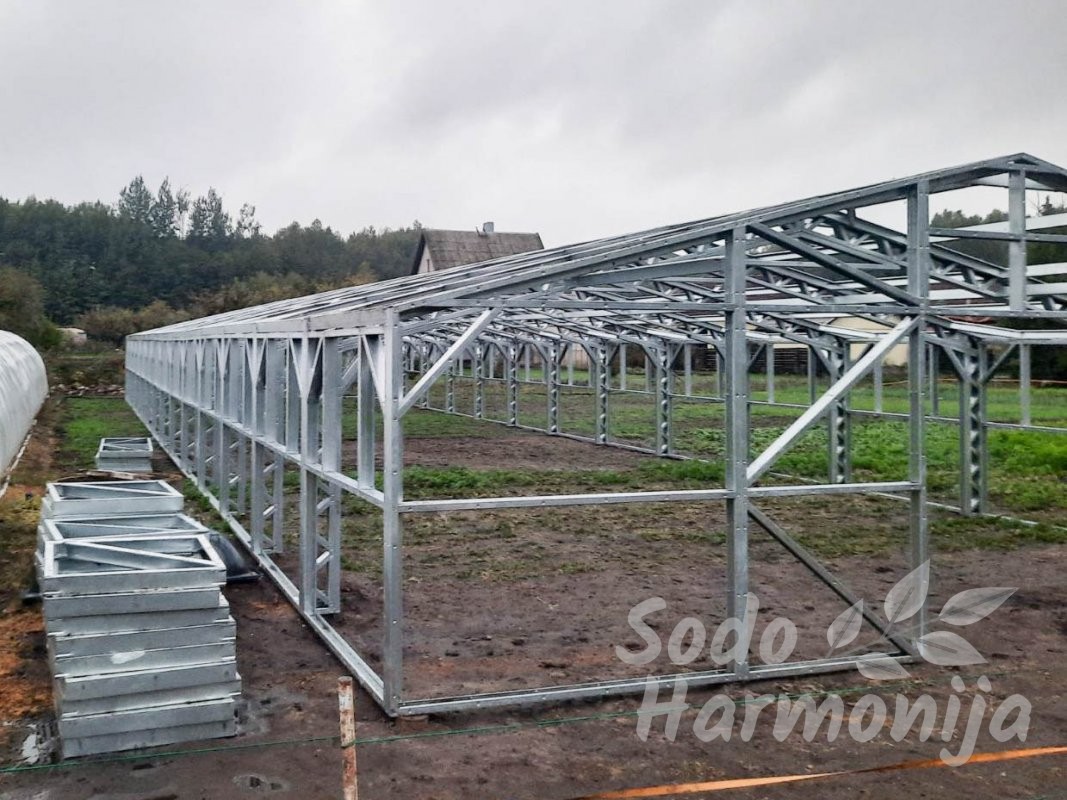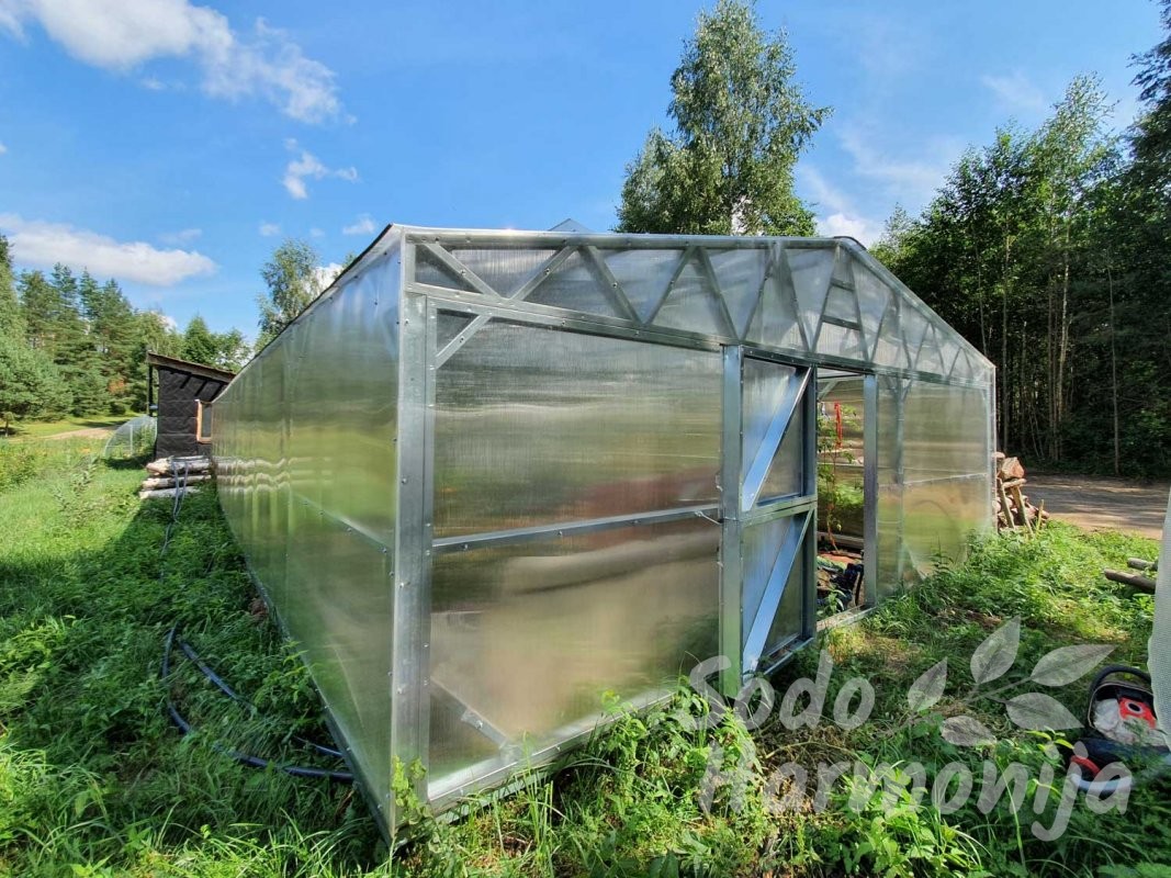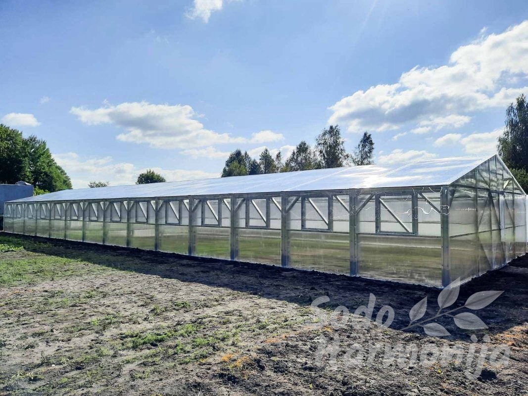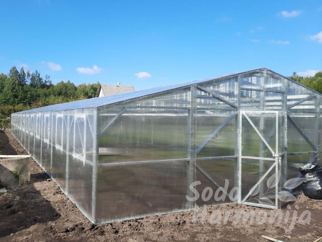Šiltnamiai gaminami iš cinkuoto plieninio U formos profilio 40×89 mm. Dengiami polikarbonatine, sertifikuota danga su UV apsauga, storis 4-6 mm (sandelyje) esant pageidavimui galime pasiūlyti ir storesnę dangą (užsakoma). Dirbame tik su kokybišką produkciją teikiančiais gamintojais, kuriuos atsirinkome per ilgą patirtį šioje srityje.