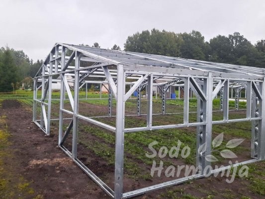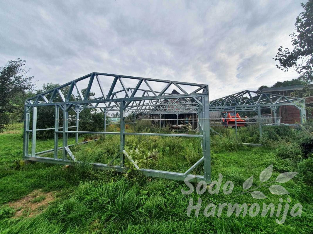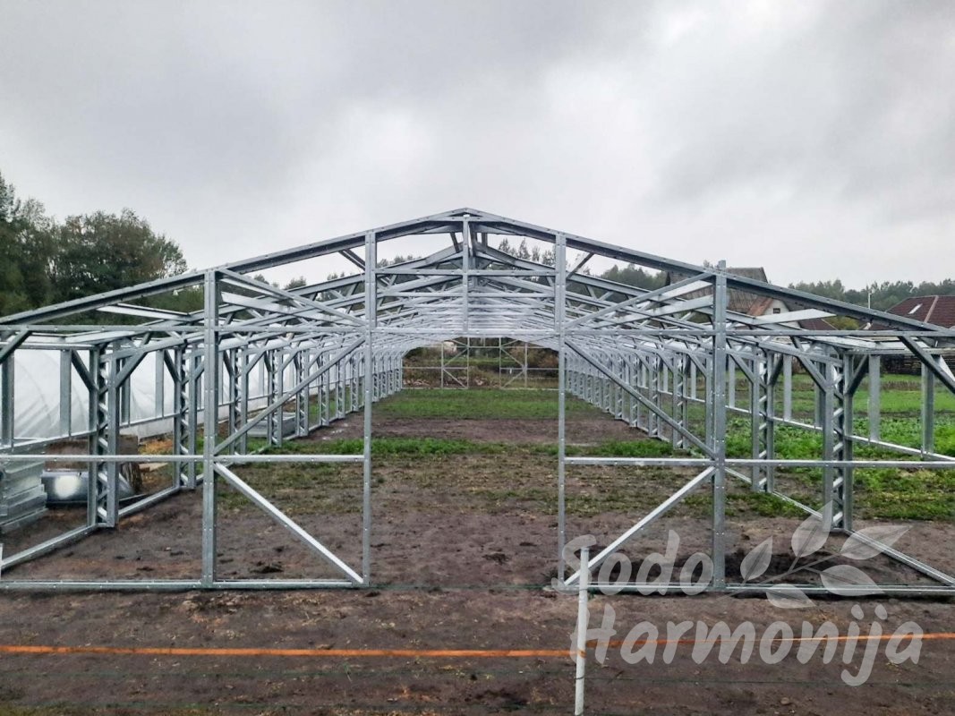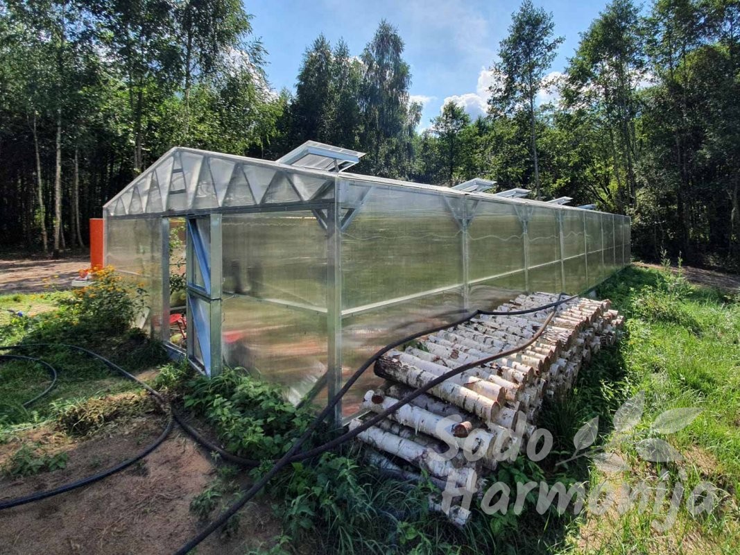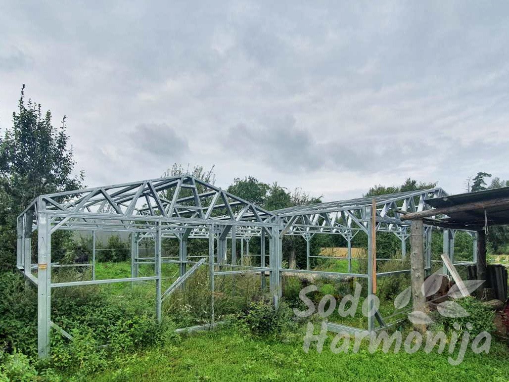 Šiltnamiai gaminami iš cinkuoto plieninio U formos profilio 40×89 mm. Dengiami polikarbonatine, sertifikuota danga su UV apsauga, storis 4-6 mm (sandelyje) esant pageidavimui galime pasiūlyti ir storesnę dangą (užsakoma). Dirbame tik su kokybišką produkciją teikiančiais gamintojais, kuriuos atsirinkome per ilgą patirtį šioje srityje.