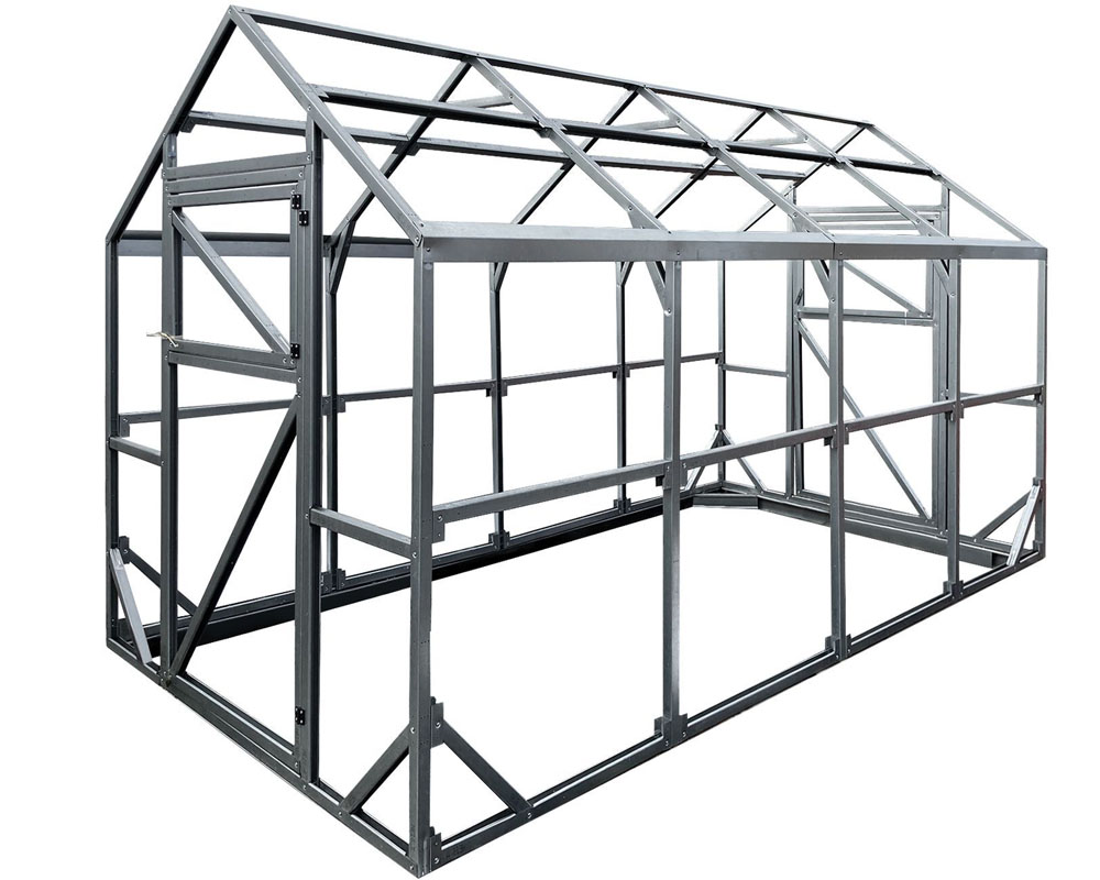 Rėmas: cinkuotas U profilis 40×40 mm, surenkamas iš atskirų elementų.
