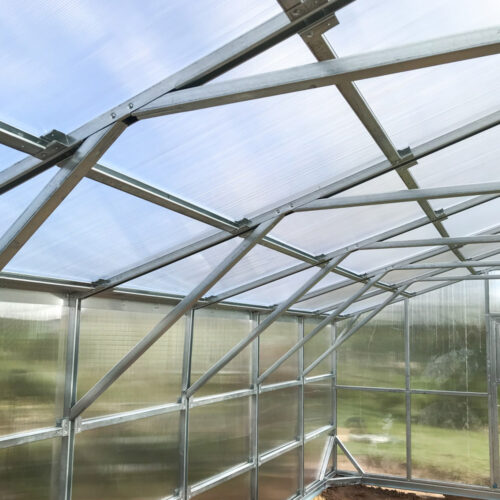 DELUXE šiltnamio rėmas gaminamas iš cinkuoto 40×40 mm profilio. Šiltnamis turi duris su orlaide jų viršuje, durys abiejuose šiltnamio galuose . Danga tvirtinama savisriegiais varžtais. Konstrukcija surenkama iš atskirų elementų. Tvirtinimo į žemę šis šiltnamis neturi. Jeigu neturite savo pamato ir neplanuojate jo darytis, mūsų siūlymas būtų įsigyti šį šiltnamį kartu su cinkuoto profilio, 10 cm aukščio, pamatu, kuris turi masyvias kojas tvirtinimui į žemę. Konstrukcija surenkama naudojant savisriegius varžtus, tai reiškia, kad šiltnamį surinkti bus paprasčiau ir greičiau nei šiltnamius, kuriuose naudojami paprasti varžtai su veržlėmis.
