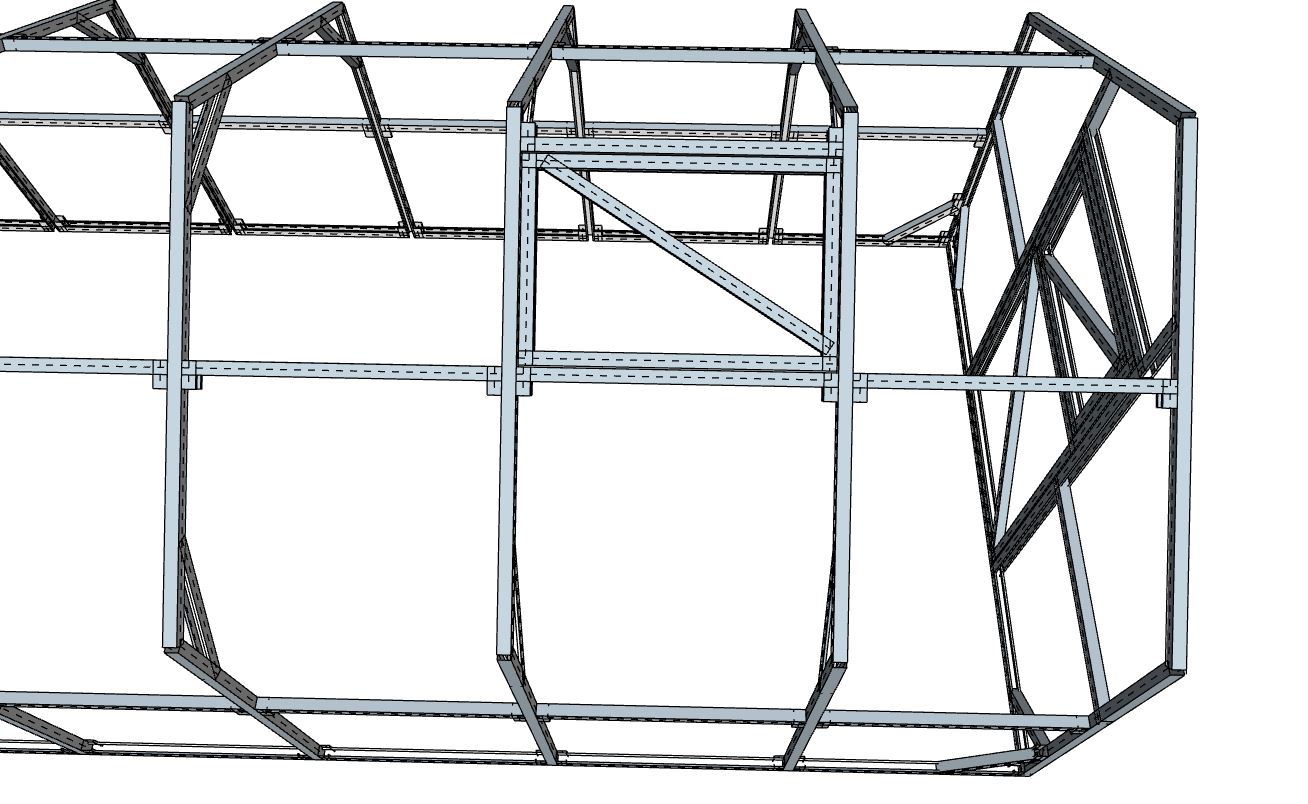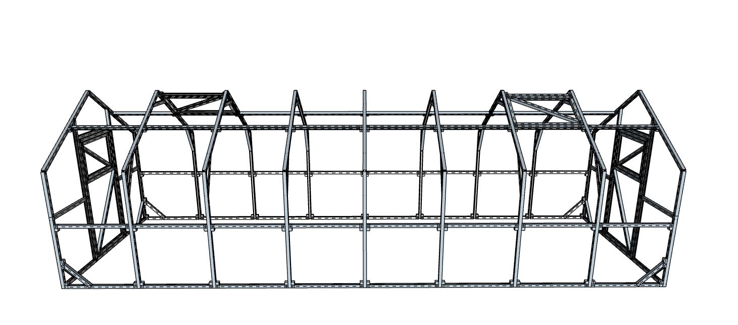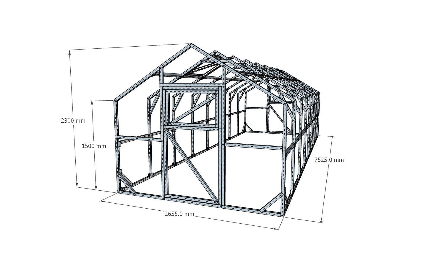 Šiltnamio rėmas gaminamas iš cinkuoto 40×40 mm profilio. Danga tvirtinama savisriegiais varžtais. Konstrukcija surenkama iš atskirų elementų. Tvirtinimo į žemę šis šiltnamis neturi. Konstrukcija surenkama naudojant savisriegius varžtus, tai reiškia, kad šiltnamį surinkti bus paprasčiau ir greičiau nei šiltnamius, kuriuose naudojami paprasti varžtai su veržlėmis.