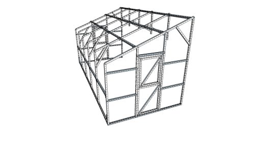 Šiltnamio rėmas gaminamas iš cinkuoto 40×40 mm profilio. Šiltnamis turi pilnai arba iki pusės varstomas duris priekyje ir gale, bei orlaides vėdinimui. Danga tvirtinama savisriegiais varžtais. Konstrukcija surenkama iš atskirų elementų. Tvirtinimo į žemę šis šiltnamis neturi. Konstrukcija surenkama naudojant savisriegius varžtus, tai reiškia, kad šiltnamį surinkti bus paprasčiau ir greičiau nei šiltnamius, kuriuose naudojami paprasti varžtai su veržlėmis.