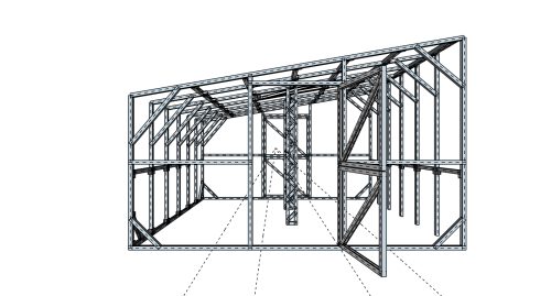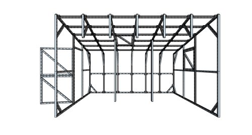 Rėmas: cinkuotas U profilis 40×40 mm, surenkamas iš atskirų elementų.